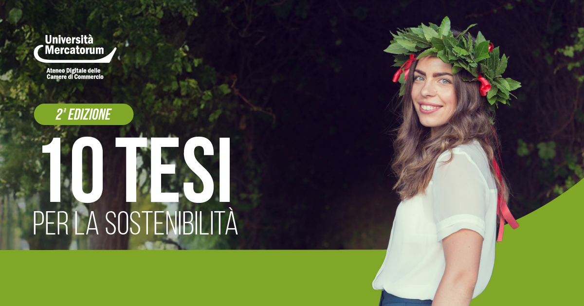 Universitas Mercatorum aderisce alla seconda edizione del Premio di Laurea “10 Tesi per la Sostenibilità”, l’iniziativa nazionale promossa da Fondazione Symbola, Luiss Guido Carli e Unioncamere, con il sostegno di Deloitte Climate & Sustainability e in collaborazione con AlmaLaurea, RUS e INSTM, con il patrocinio della CRUI e del MUR.
